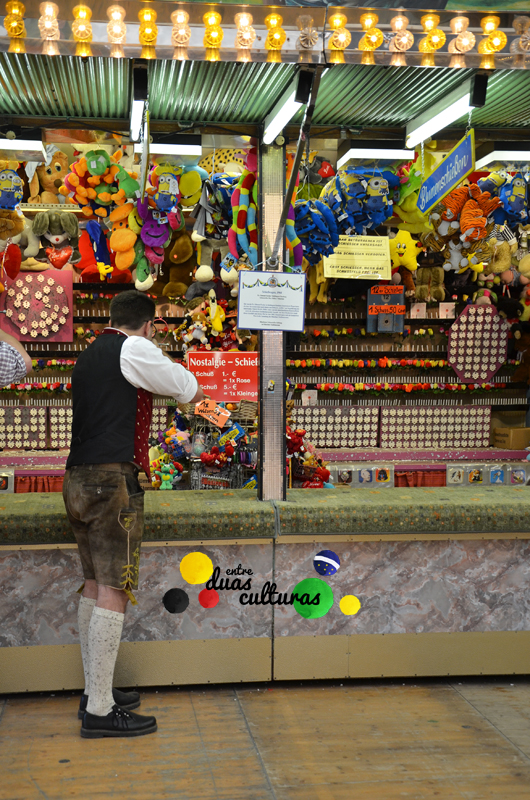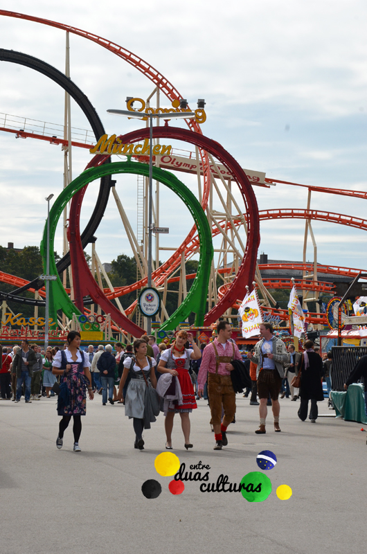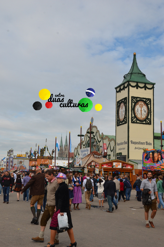 Embora eu more aqui na Alemanha há muitos anos, eu nunca havia participado dessa grande festa. Mas este ano eu fui! Fiquei encantada com tanta gente, tantas cores, variedades de comidas típicas da Baviera, cervejarias e muitos trajes típicos: As mulheres usam o famoso Dirndl, um vestido tradicional com corpete, saia, avental e blusa; e os homens usam a Lederhose (português: “calça de couro”), que é na verdade uma bermuda curta ou até a altura do joelho e que é usada com suspensórios. Na minha opinião, o que deixa a festa mais especial é o fato de (quase) todos estarem vestidos com os trajes típicos da Baviera… É uma atmosfera bem legal… Para não ficar de fora, eu também usei um dirndl bem bonitinho 😉